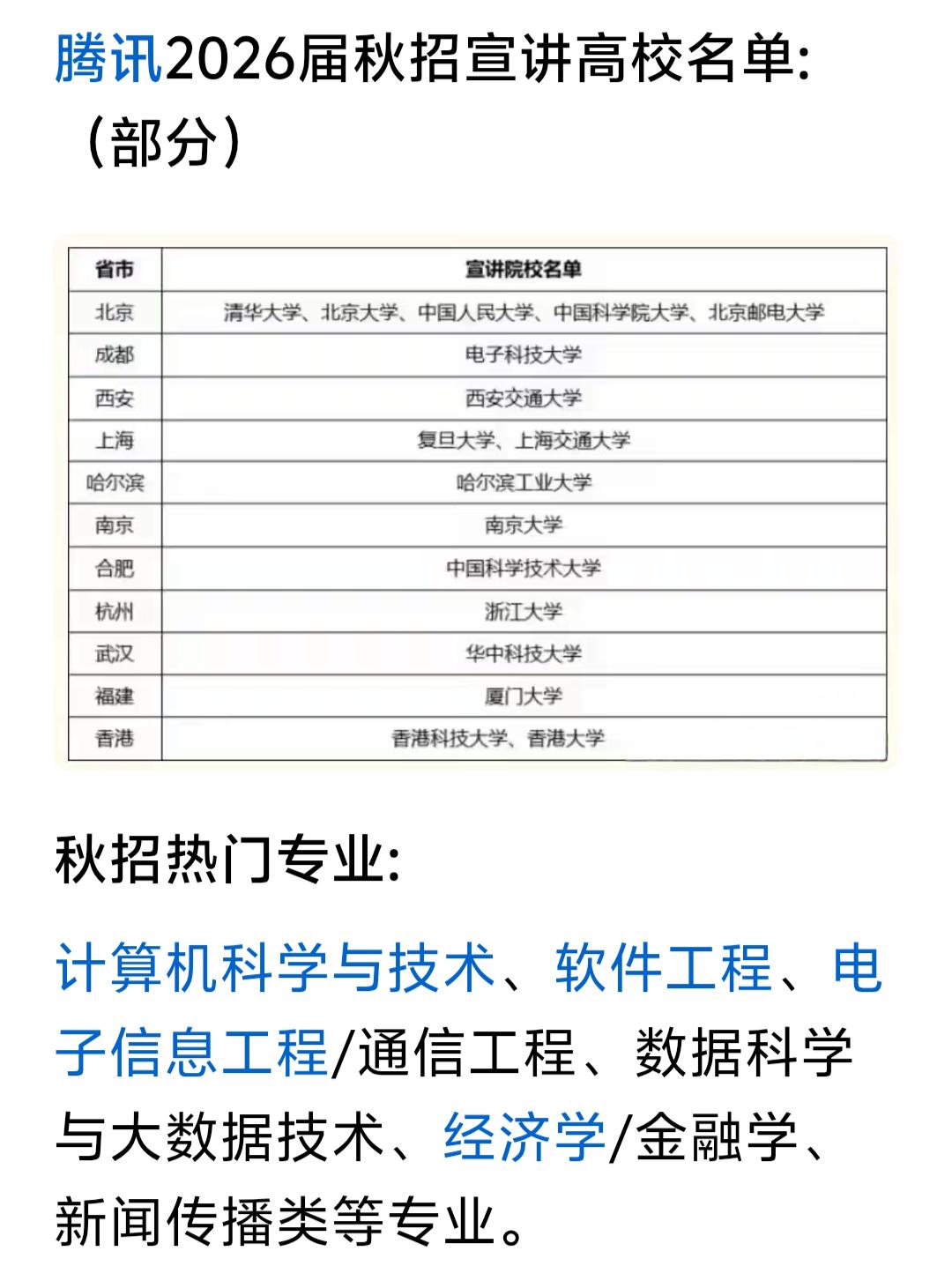 腾讯的高校秋招名单也是以地区划分的,据现有数据统计来看,北京有清华、北大、人大、中国科学院大学以及北京邮电大学,其余各地区也是代表性较强的优质名校,可见腾讯的校招竞争还是非常激烈的。