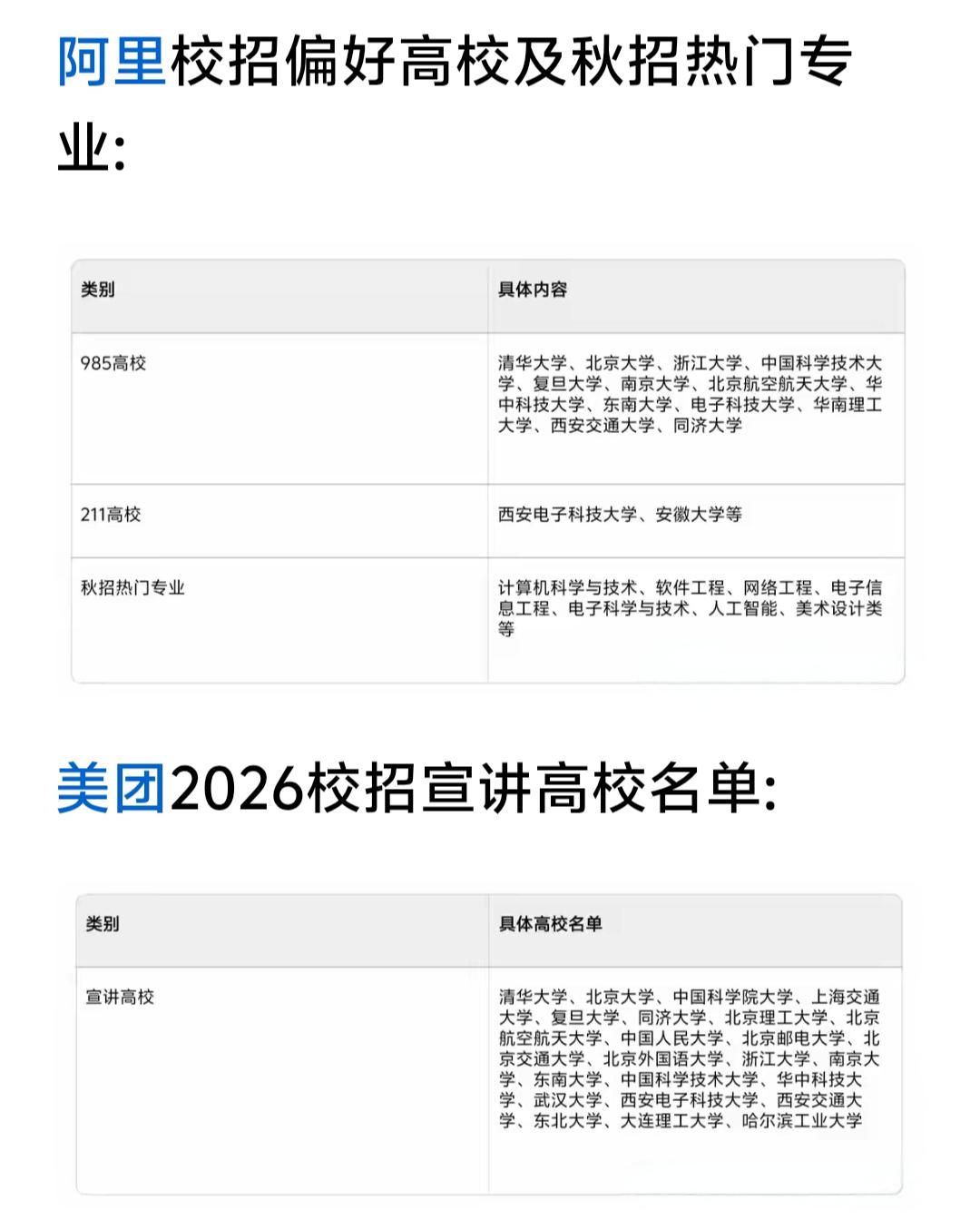 阿里秋招的企业包含13所985高校以及2所211高校,热门专业包括计算机、软件工程、网络工程、人工智能以及美术设计等专业。