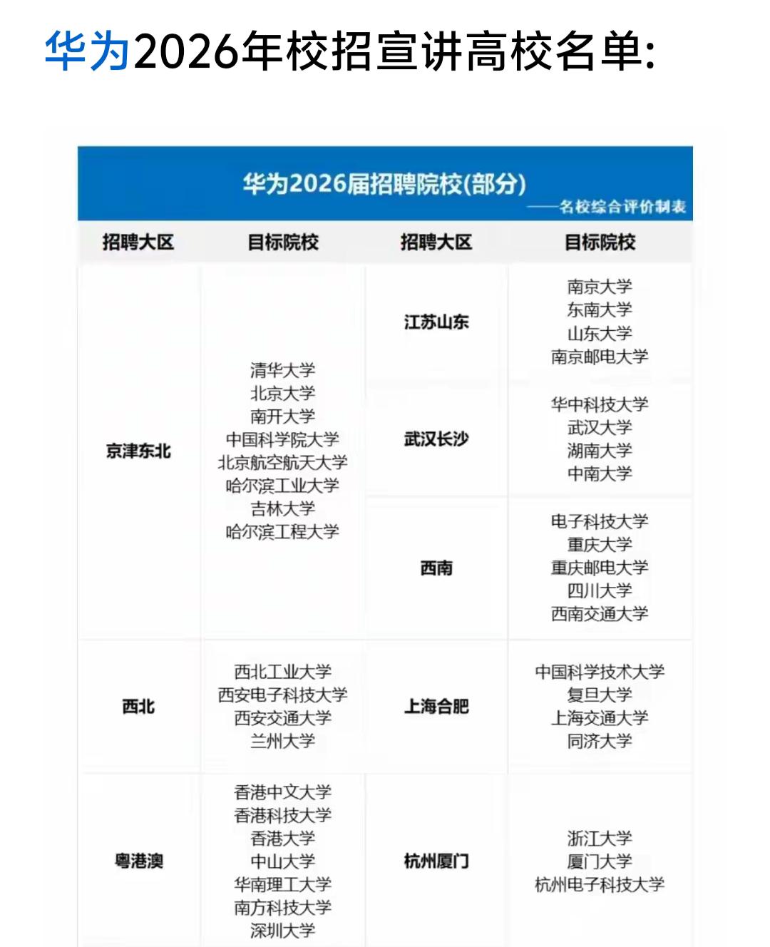 先来说说,华为企业2026届校招的主战场分为八个大区,依次是京津东北、江苏山东、武汉长沙、西南、上海合肥、杭州厦门、西北以及粤港澳。