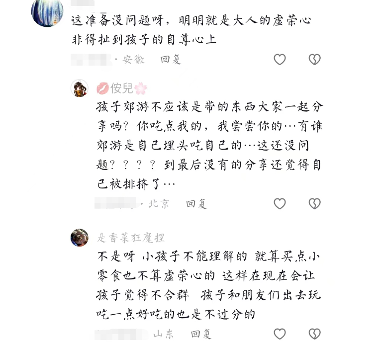 小学生的分享欲远比家长们想象的更旺盛,因此可别小看了这一份秋游午餐,它不仅是一份饱腹的事物那么简单,更是帮助小学生打开社交大门的一块砖,可当家长准备的午餐拿不出手的时候,这份分享也变得格外心酸。