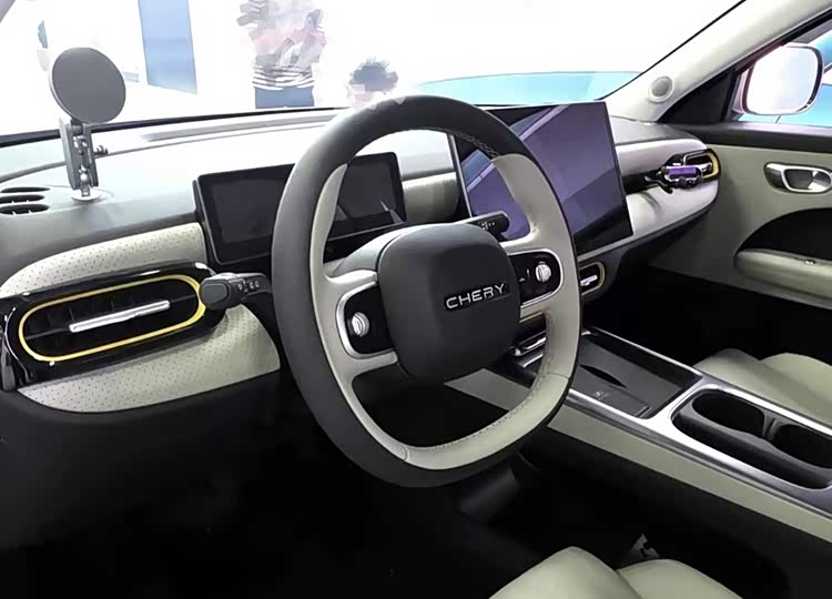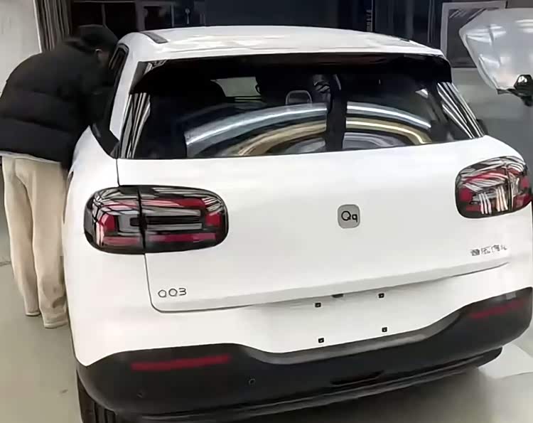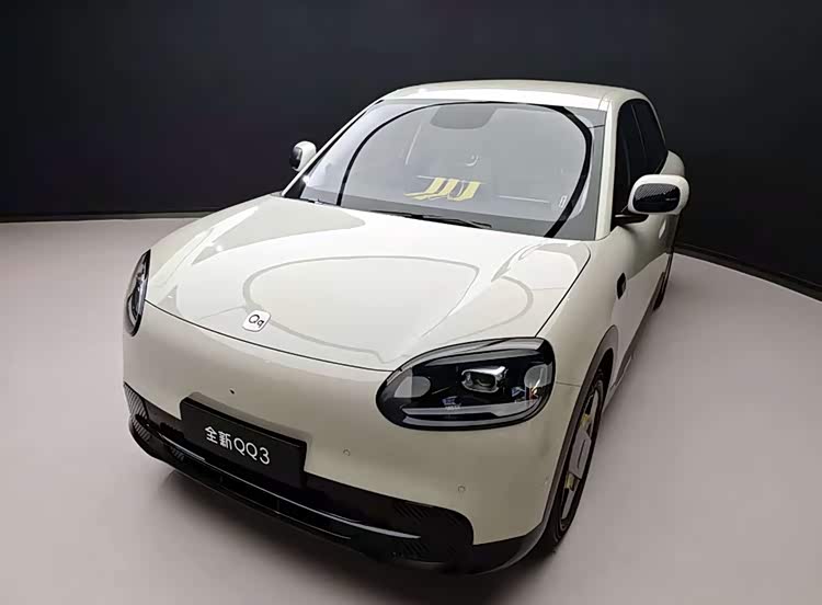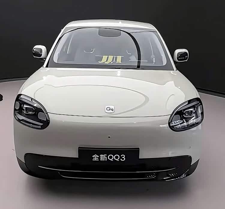外观基本还原了概念版的设计。椭圆形大灯和圆润车头保留了老QQ3的影子,但整体线条更年轻,翼子板和C柱的Q字标识辨识度拉满。尾灯也是大椭圆造型,跟车头呼应上了,远远看过去就知道是台QQ。