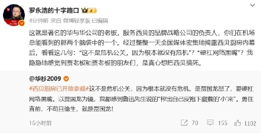 此外,在昨晚的直播中,罗永浩还疯狂吐槽了西贝的品牌顾问公司,该公司负责人怂恿贾国龙,贾总你要干,这种网络黑嘴不能放过,就干!在边上起哄。